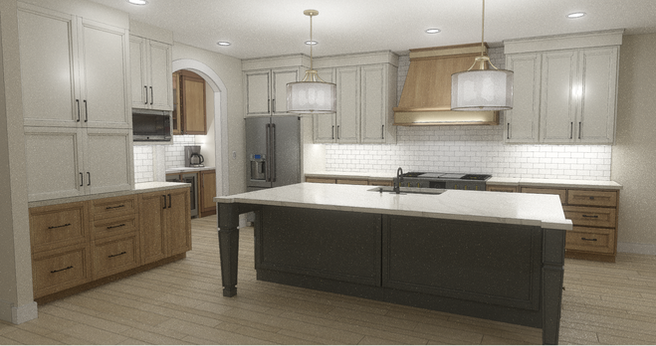 This home is being built custom for an empty nester couple. They are most excited about the chef's kitchen complete with a beverage bar and walk-in pantry. In addition this kitchen has a separate area for hiding the small kitchen appliances. Rosie, the dog is also excited for her new home where she will continue to be spoiled.